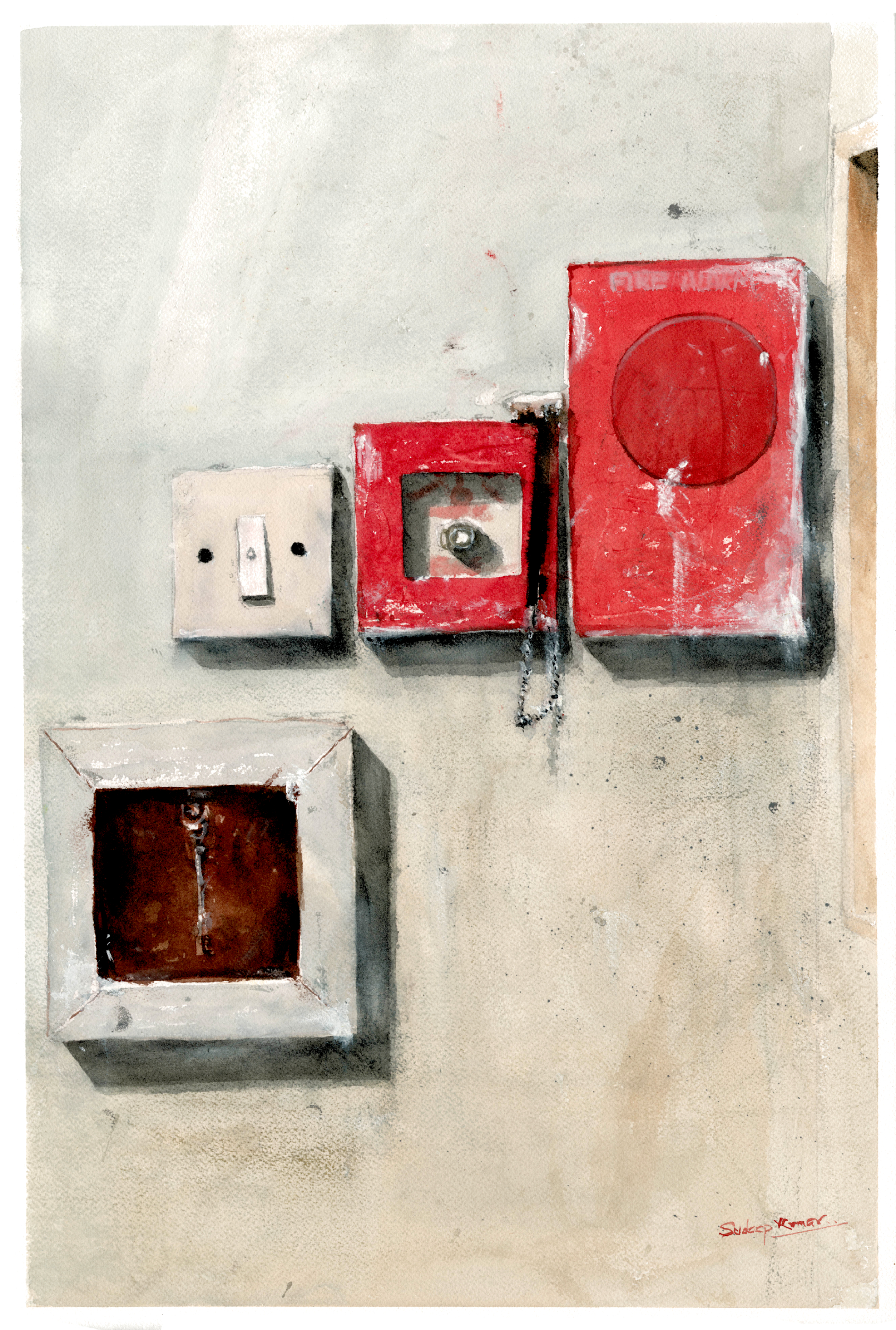 In “Backdoor” series, I aimed to shed light on the hidden beauty found in the back alleys and utility spaces of urban settings. By depicting the often-overlooked elements like electrical boxes and utility pipes, I wanted to challenge viewers to see these functional components as part of the intricate tapestry that makes up our cityscapes. Through watercolor, I aimed to capture the textures, colors, and details that define these often unnoticed elements, inviting viewers to see urban landscapes in a new light.
